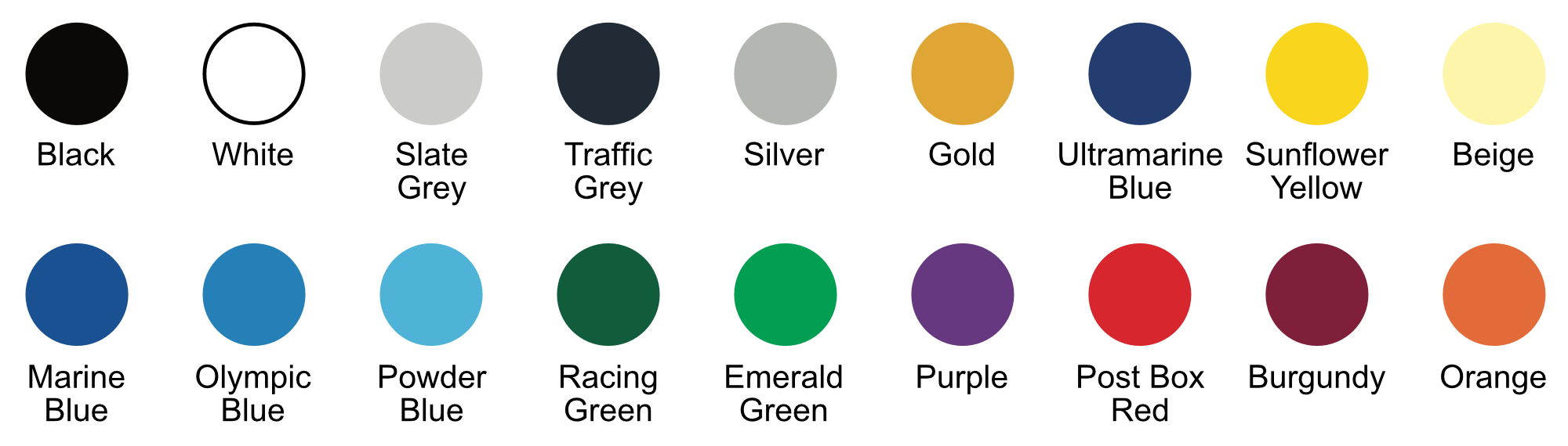 For a full range of stocked colours, please view our Ral Colour Chart.