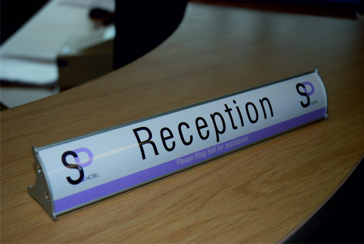 The Architech desktop curved Insert sign system is a simple system that uses the Architech curved profile to embellish desktop graphics such as reception signs and menus.
