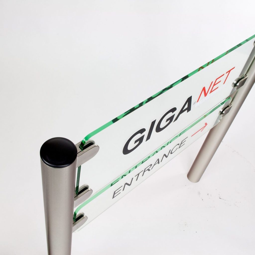 Post Mounted Acrylic Signs are a stylish system that offers a clean and modern appearance with the capability to be both directional signage or a site's principal sign. Comprising 10mm acrylic, post sections (round or square) and glass clamps it is an easy to install, low maintenance system.