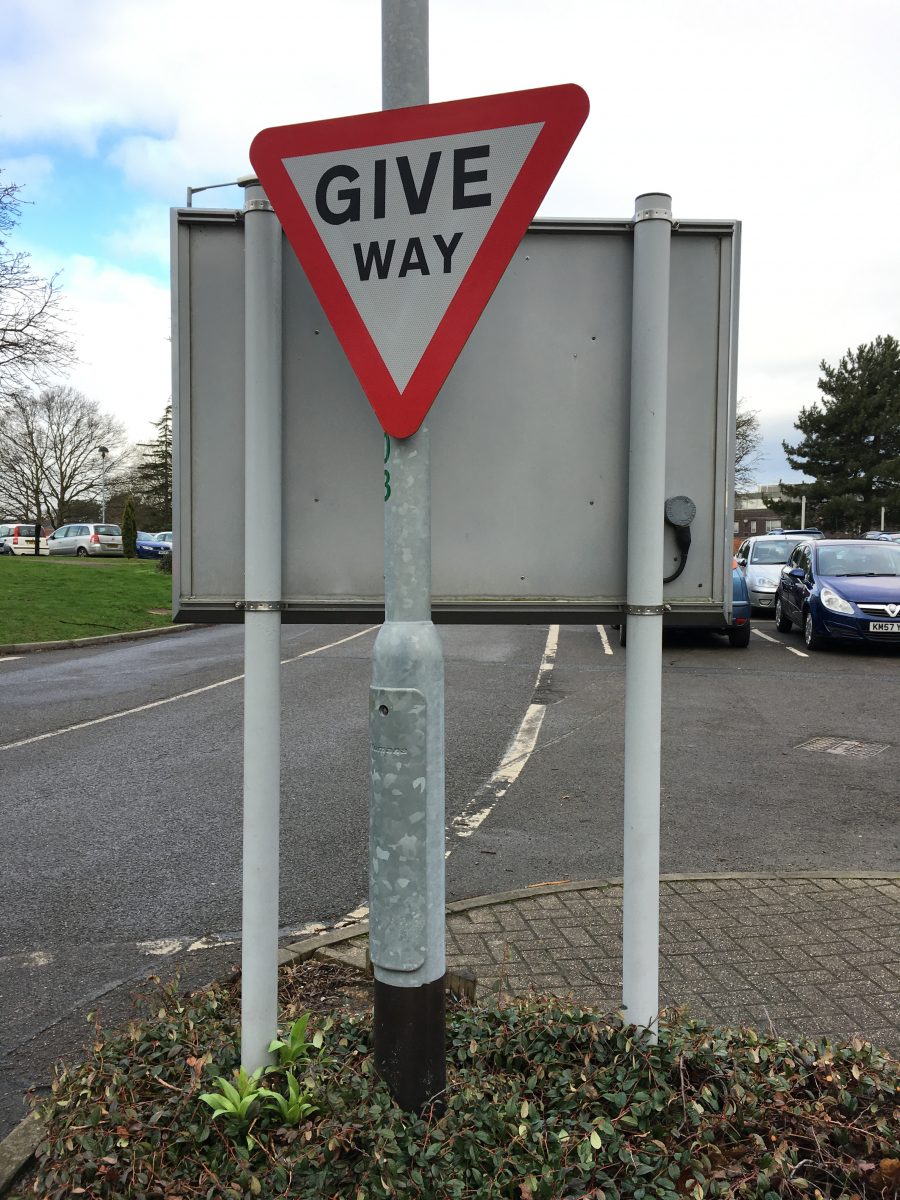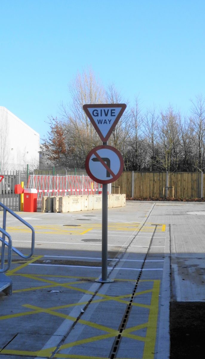 The post mounted road signage system utilises both stock, standard sign faces and bespoke cut vinyl to give the required appearance and grade of reflective.